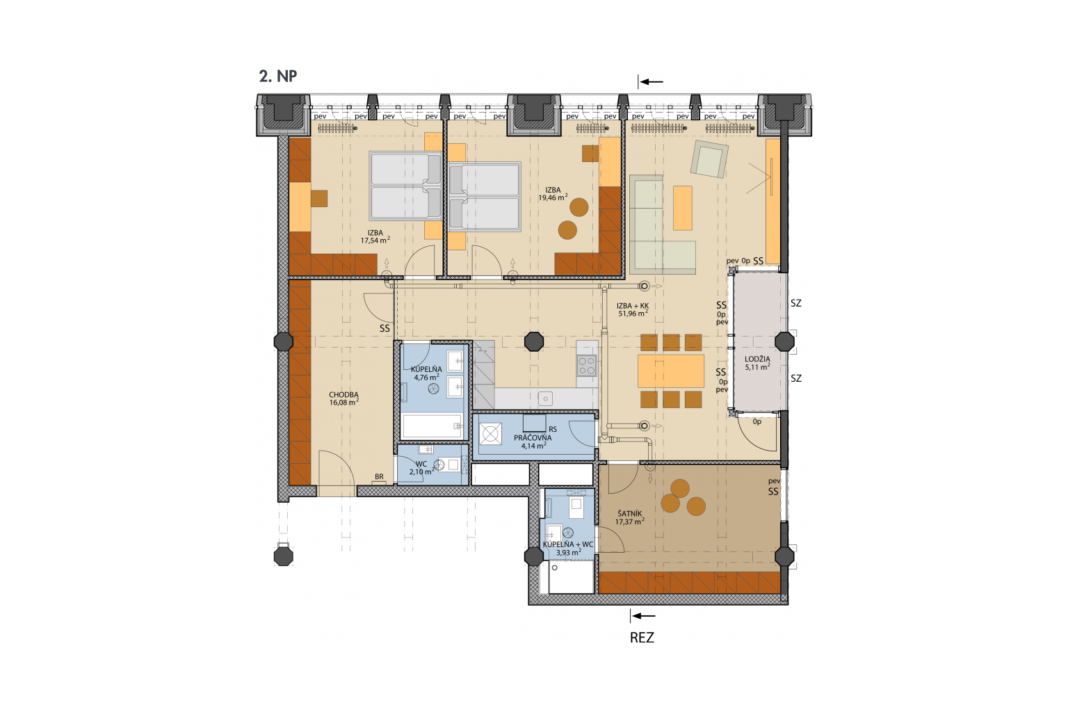 • Celkový počet jednotiek je 71 s dispozíciou od 1 izb. až po priestranné 4 izb. byty
